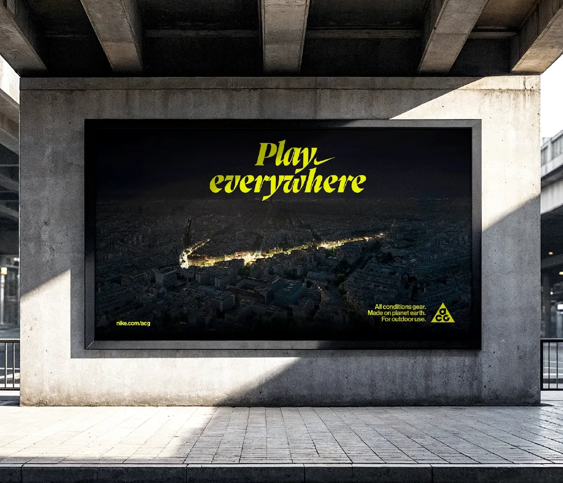 Comment réaffirmer l'adn de nike acg auprès d'une génération urbaine ? En transformant chaque territoire en un terrain de jeu sans limites. Cette campagne internationale brouille les frontières entre technicité outdoor et culture créative à travers une direction artistique audacieuse et des visuels immersifs.